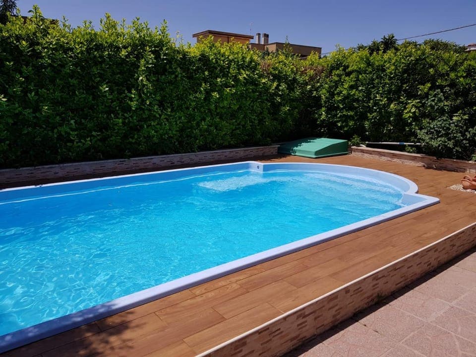 Yes, a swimming pool is available for use at Carla's rooms. Enjoy the water!