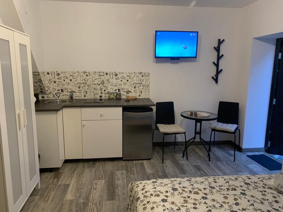 Domek super ,na dole kanapa i fotele stolik i rozkładany stół plus kuchnia w pełni wyposażona i łazienka .
