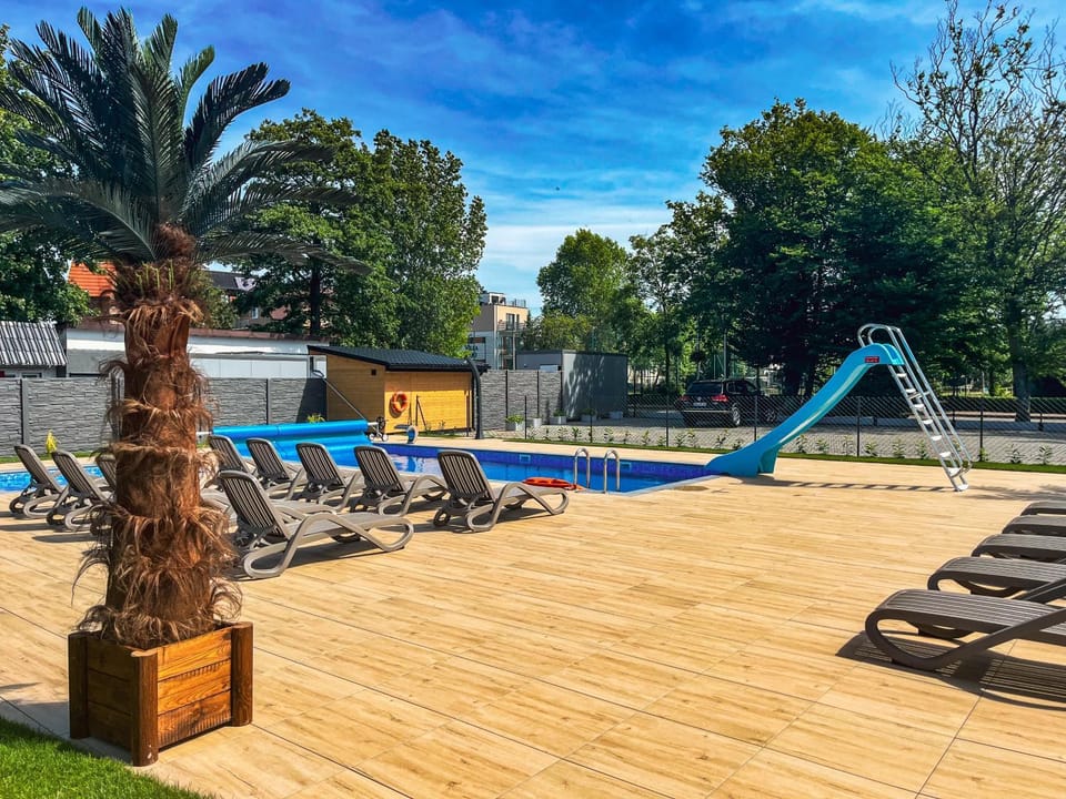 Yes, a swimming pool is available for use at Ośrodek Wypoczynkowy Marcela. Enjoy the water!