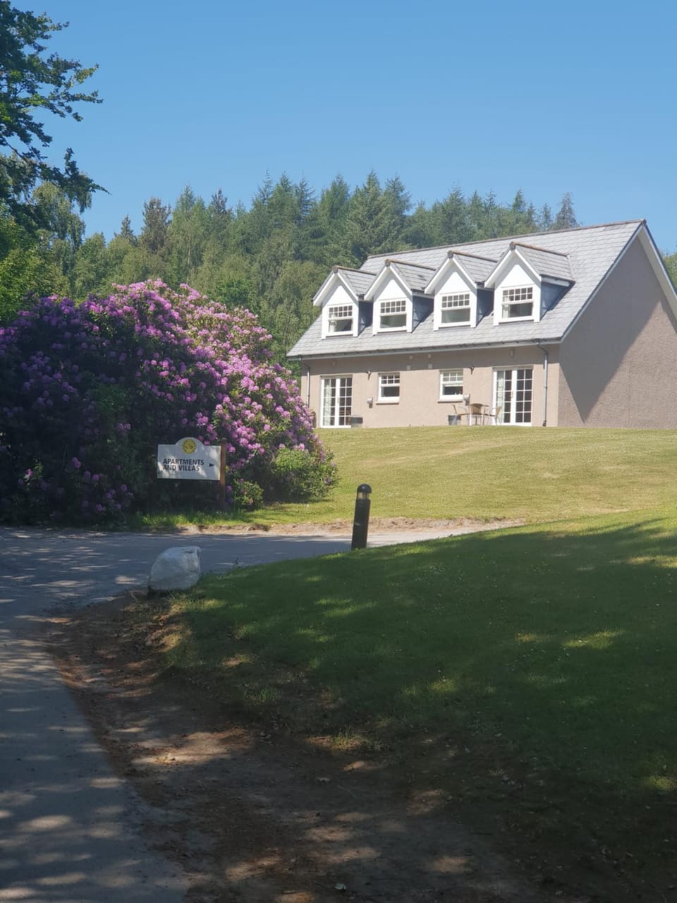 Such a comfortable place and very beautifully appointed with a very well equipped kitchen too. The living area was upstairs with a lovely view and it was huge - with a kitchen and dining area and the balcony outside overlooking the woodland on the edge of the golf course.....would loved to have been able to stay longer to explore, play golf and walk more.