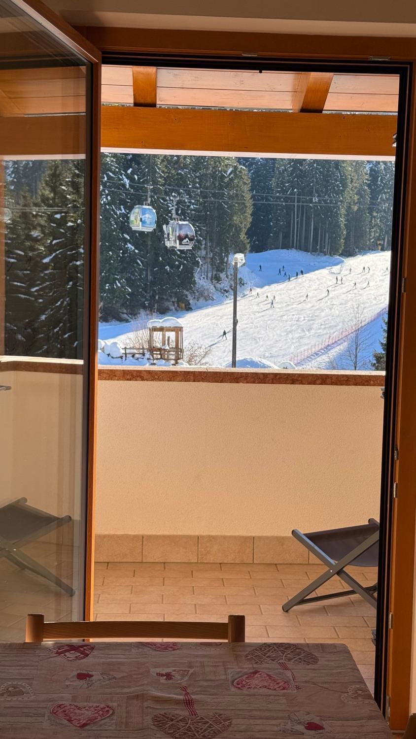 Ottima posizione a 20 metri dal campo scuola delle Rindole, collegato da un breve raccordo alla telecabina Andalo-Doss Pelà. Gentile e disponibile la proprietaria. Comodo il deposito sci nel garage coperto