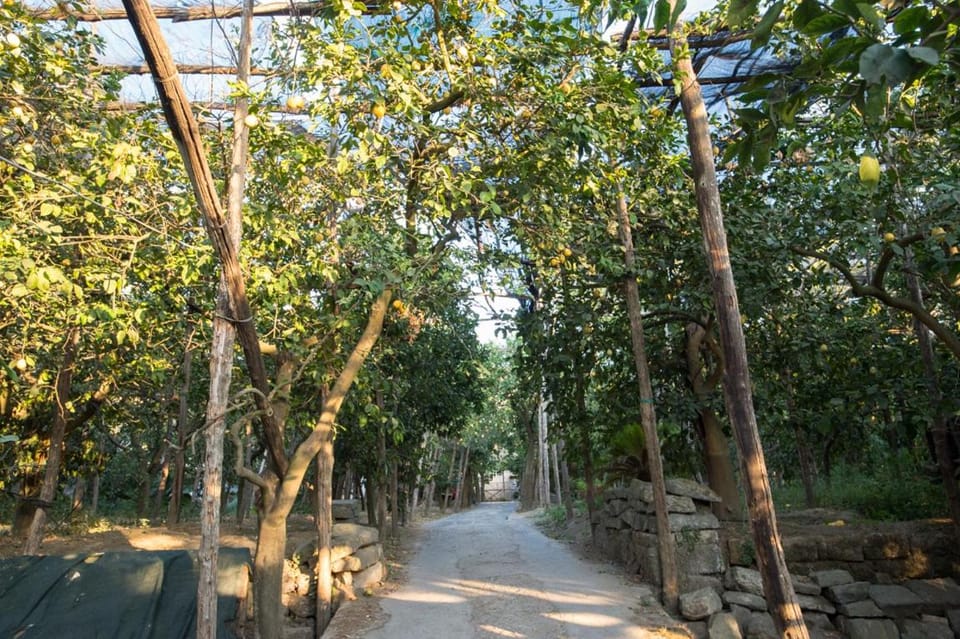 Set in a beautiful lemon grove and luscious plants with a very clean bedroom and bathroom equipped with big tv and fridge . Delightful and friendly host who set up a charming and delicious breakfast with fresh squeezed orange juice, coffee and fresh fruit and croissants.