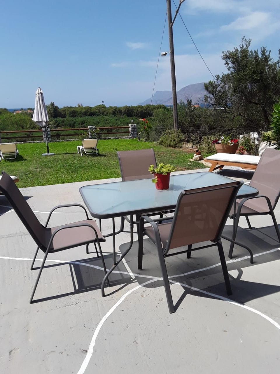 Appartamento molto pulito, dotato di ogni confort, con terrazzo vista mare, immerso tra gli ulivi a pochi chilometri dalle spiagge più belle, la signora proprietaria è stata gentilissima, ci ha fatto trovare due bottiglie di acqua in frigo e una bottiglia di olio greco, ci ha portato del cibo buono con i dolcetti locali e il raki.Sicuramente un appartamento da non lasciarlo sfuggire per le vacanze nelle vicinanze di Kissamos ad in prezzo ottimo.l