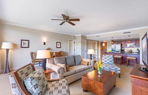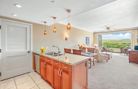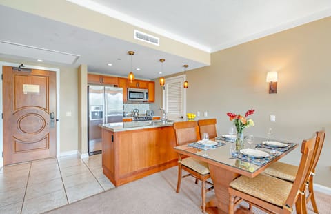 Relax on either private lanai or lounge inside and get swept away by the lovely Maui sky after folding away the glass doors, allowing the interior to blend seamlessly with the outdoors. Enjoy your meals on the spacious balconies or dine indoors in the climate-controlled air conditioning.