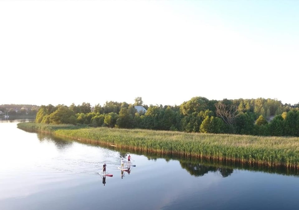 Dostęp do jeziora z pomostem i małą plażą dla osób z ośrodka.