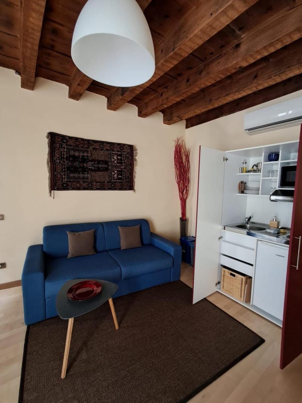 Small kitchen area but perfect for us with two. No milk for tea or coffee but it’s an Italian thing