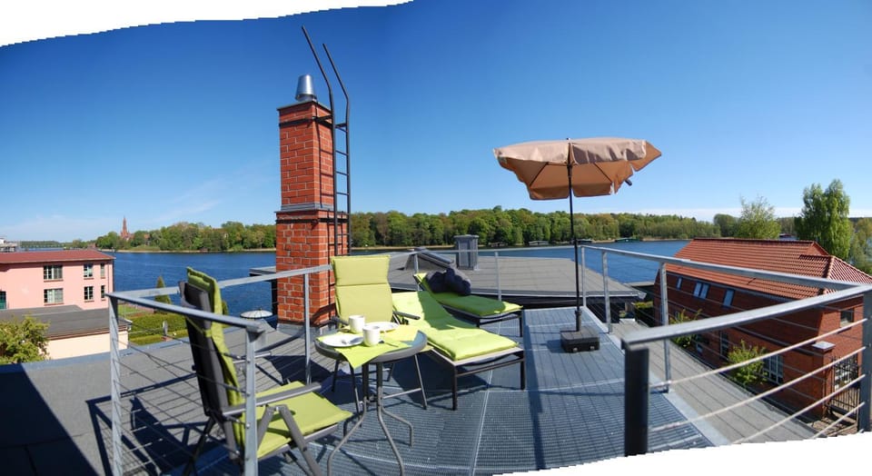 Die Dachgeschosswohnung ist ein Träumchen mit Blick auf dem Malchowersee und mit direkten privaten Zugang zum See wo wir viel geschwommen sind.