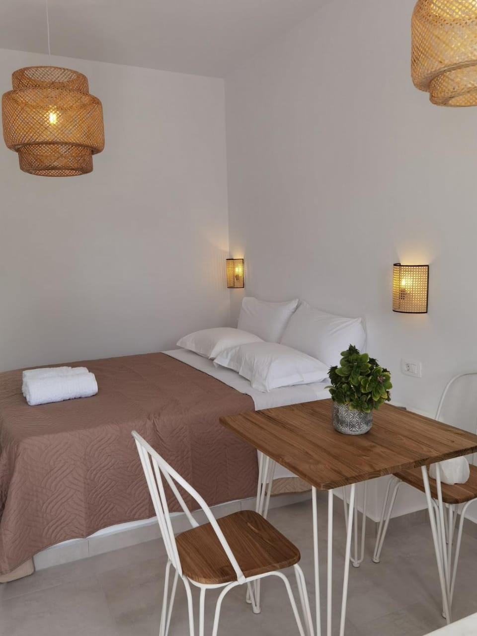 Great rooms, we stayed in both the studio apartments and the 1 bed apartment both were great and nicely furnished and simple. The room was cleaned every 2 days and was spotless. The ladies who look after the villas are very friendly. The price is great for Santorini and the beach is lovely and only a 1 minute walk down the street, we rented a car directly from the Villas which was great to explore the island.