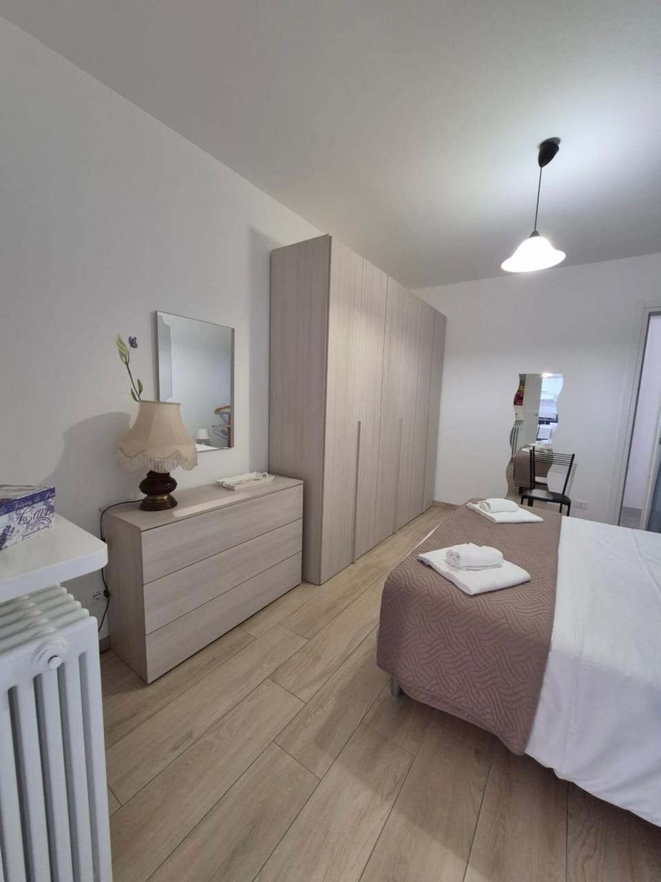 La chambre principale est un peu sombre car la porte fenetre donne sur un couloir.