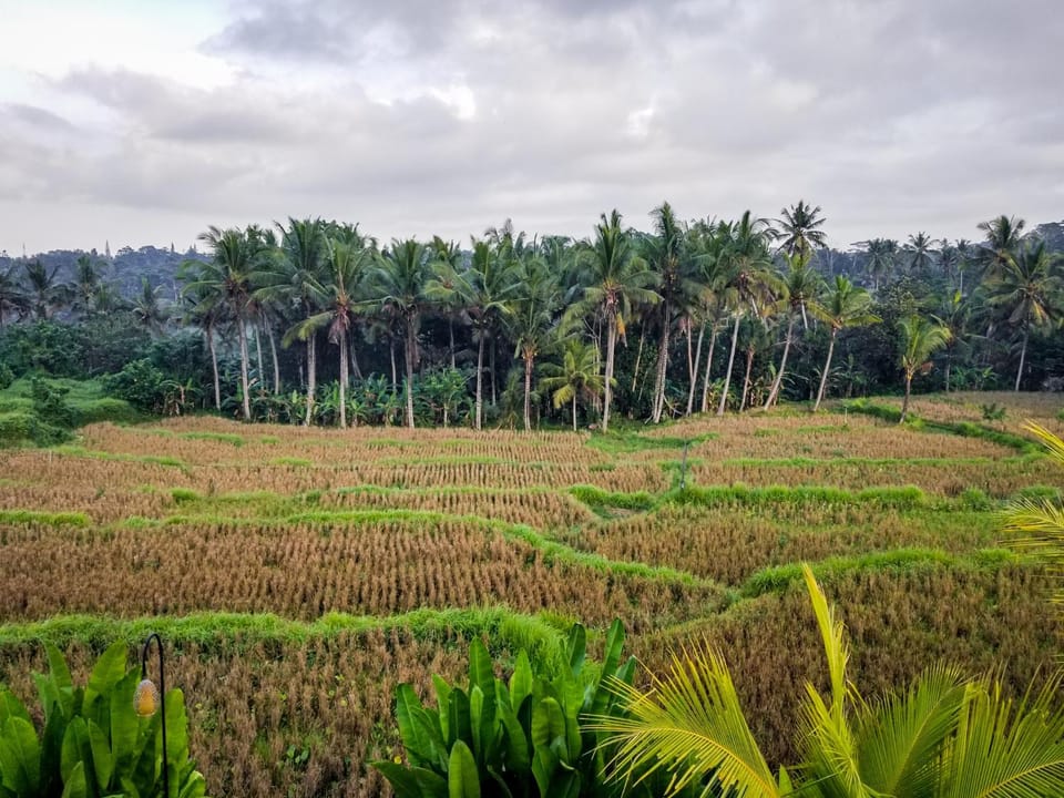 Out of busy Ubud and we liked the setting although I would have liked the unit looking out to the field. Our deluxe room looked to a small but lovely garden but you were looking into the breakfast area of other guests having breakfast. The grounds were immaculately kept. Breakfast was nice but simple. Good Warangs and restaurants required the use of transport, we used grab which was cheap and easy. The guesthouse had scooters for hire. Traffic getting in and out of Ubud was often really busy and slow as you would expect. We were ok with that but others may find it an issue.
