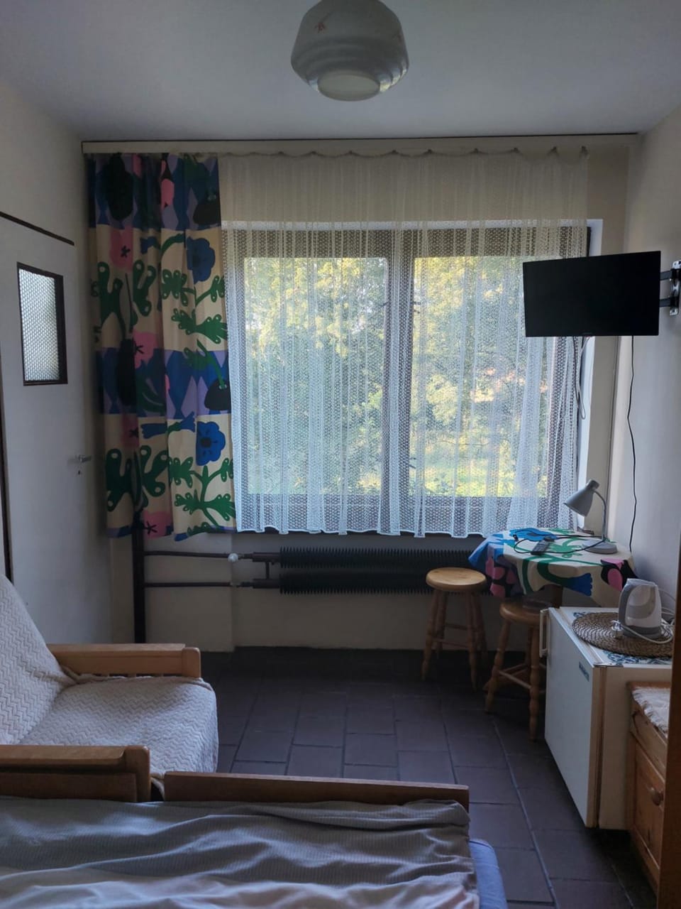 Pierwsze co przykuło Naszą uwagę to brudny dywan z okruchami po poprzednich gościach, pościel posiadała plamy wyglądały na zaschniętą krew oraz chodzące małepo pościelirobaki, gdy zasłonimy zasłony ujrzymy magię kurzu, który z nich uleci, na sztućcach zaschnięte jedzenie gości co jest bardzo obrzydliwe, na kubkach zacieki z poprzedniego napoju i teraz chyba kropka nad "i" toaleta... potrzebuje generalnie GĄBKI ORAZ MLECZKA DO CZYSZCZENIA! Pająków w łazience masa, umywalka dawno nie widziała środków do czyszczenia, prysznic to jakaś porażka po suficie biorąc prysznic chodziły sobie dwa robaki, zasłona prysznicowa z plamami, brudna i delikatnie już zaczyna zachodzić grzybem. Przyjechaliśmy na krótki wypad i całe szczęście patrząc na zapłacony z góry pokój z Dzieckiem. Dodając mało istotną rzecz, ale jednak. Wieczorem Nie uraczycie Państwo telewizji ;)
