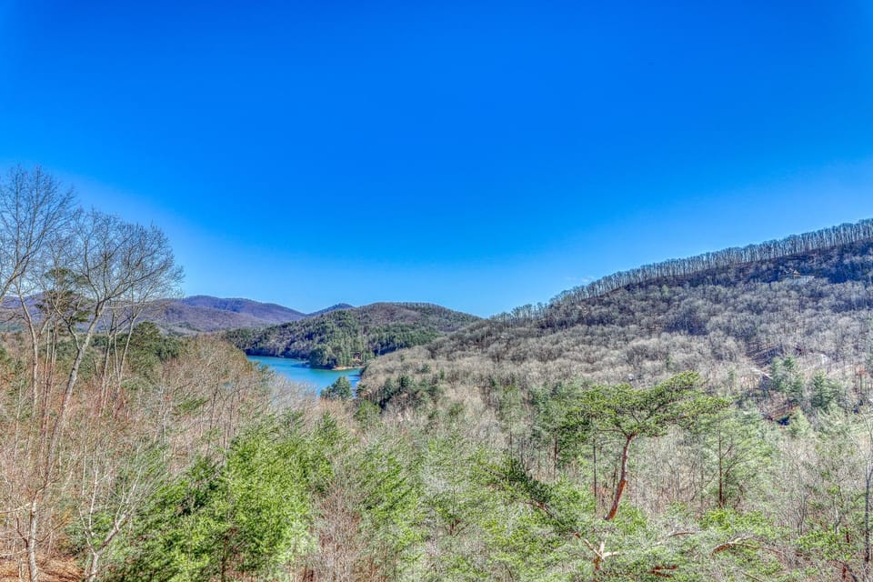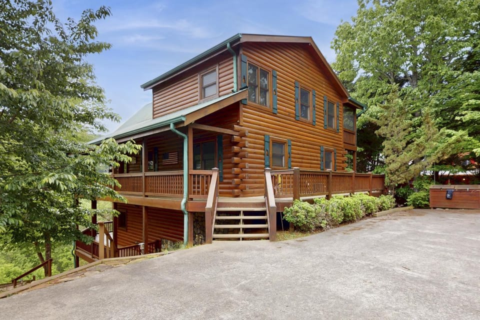 Nice view, beautiful outside decks and fireplace, nice cabin overall. Outside seating area.
